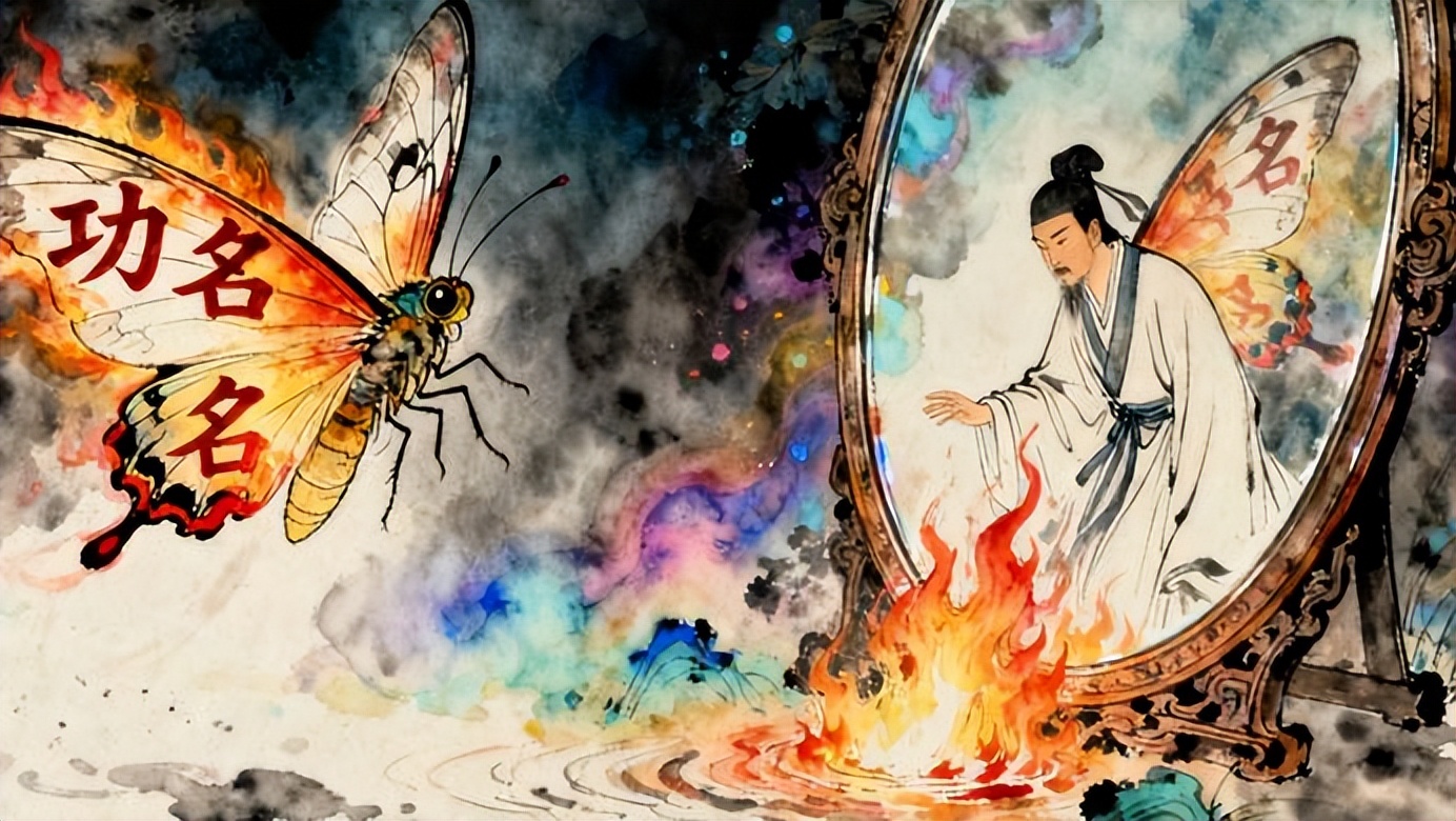 深夜,他常被同一個噩夢驚醒:自己變成了一只撲火的飛蛾,翅膀被名為“功名”的火焰灼穿,墜落時才發現那火焰原是鏡中幻影。這個意象如此頑固,仿佛潛意識在向他吶喊——你執著的一切,或許本就不存在。