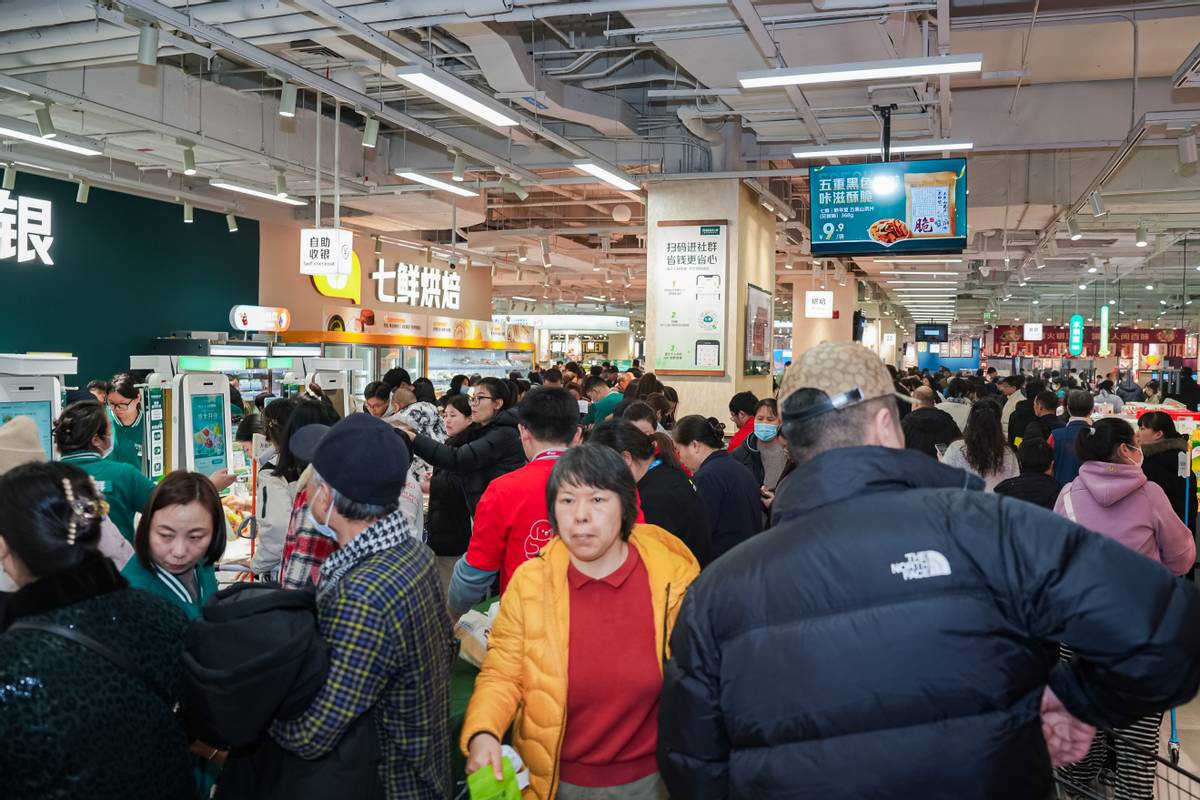 開業當日清晨,石家莊氣溫接近零度,但仍擋不住市民們的熱情,開業前超市入口處便排起長隊。正式營業后,人群瞬間涌向賣場,從入口到超市內部的通道被快速填滿,工作人員隨機啟動備案,疏導秩序。“關注七鮮超市好久了,今天特地早點來搶點車厘子和雞蛋,沒想到這么多人!”家住附近的劉女士說道。