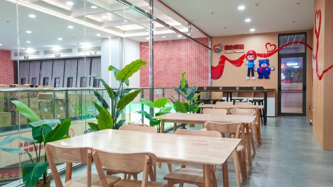 走進(jìn)“暖心驛站”,溫暖的氣息撲面而來。這個(gè)約50平方米的空間經(jīng)過精心設(shè)計(jì),休息座椅、飲水設(shè)備、充電設(shè)施、閱讀角、應(yīng)急藥箱等一應(yīng)俱全。