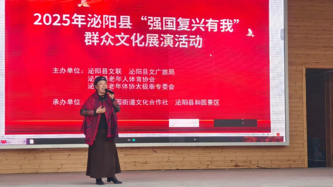 為豐富群眾精神文化生活,弘揚中華優秀傳統文化,近日,泌陽縣舉辦“強國復興有我”群眾文化展演活動。此次活動由縣文聯、縣文廣旅局、縣老年人體育協會、縣老年體協太極拳專委會聯合主辦,花園街道文化合作社、和園景區承辦。