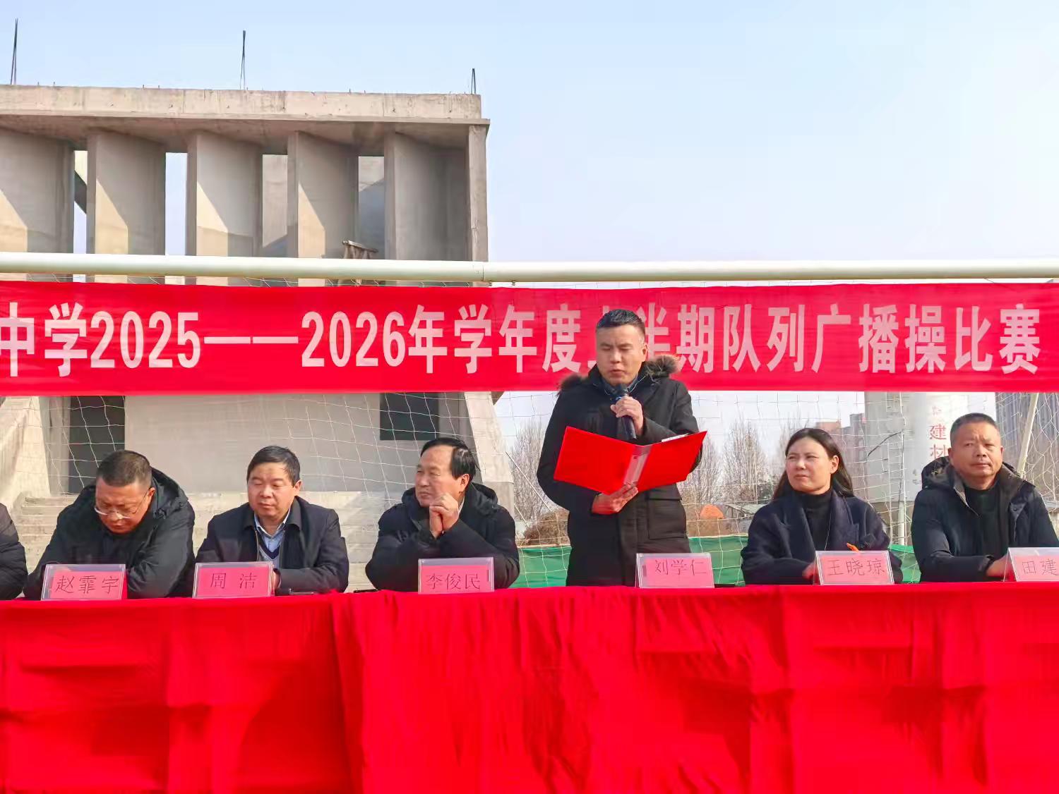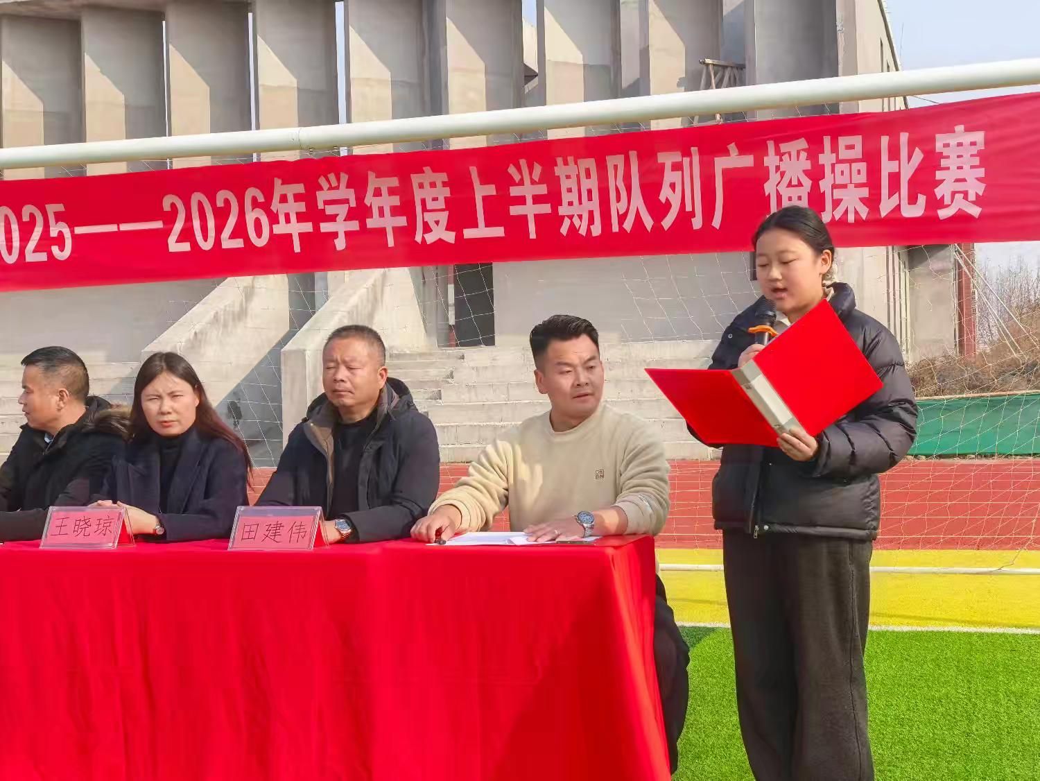 為深入落實“陽光體育”工作要求,切實增強學生體質,豐富校園文體生活,臨潁縣實驗中學于2025年12月19日下午,在學校田徑場隆重舉辦隊列廣播體操比賽。七、八年級全體班級踴躍參賽,以昂揚之姿盡顯青春風采。