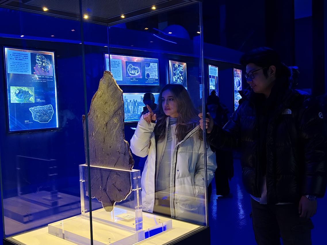 參觀過程中,采風團與來自其他國家的參觀者不期而遇。在隕石展區,兩名來自越南的網絡達人用相機多角度拍攝隕石細節。“在這里能看到世界知名的隕石,真是不虛此行。”一位越南自媒體博主說。