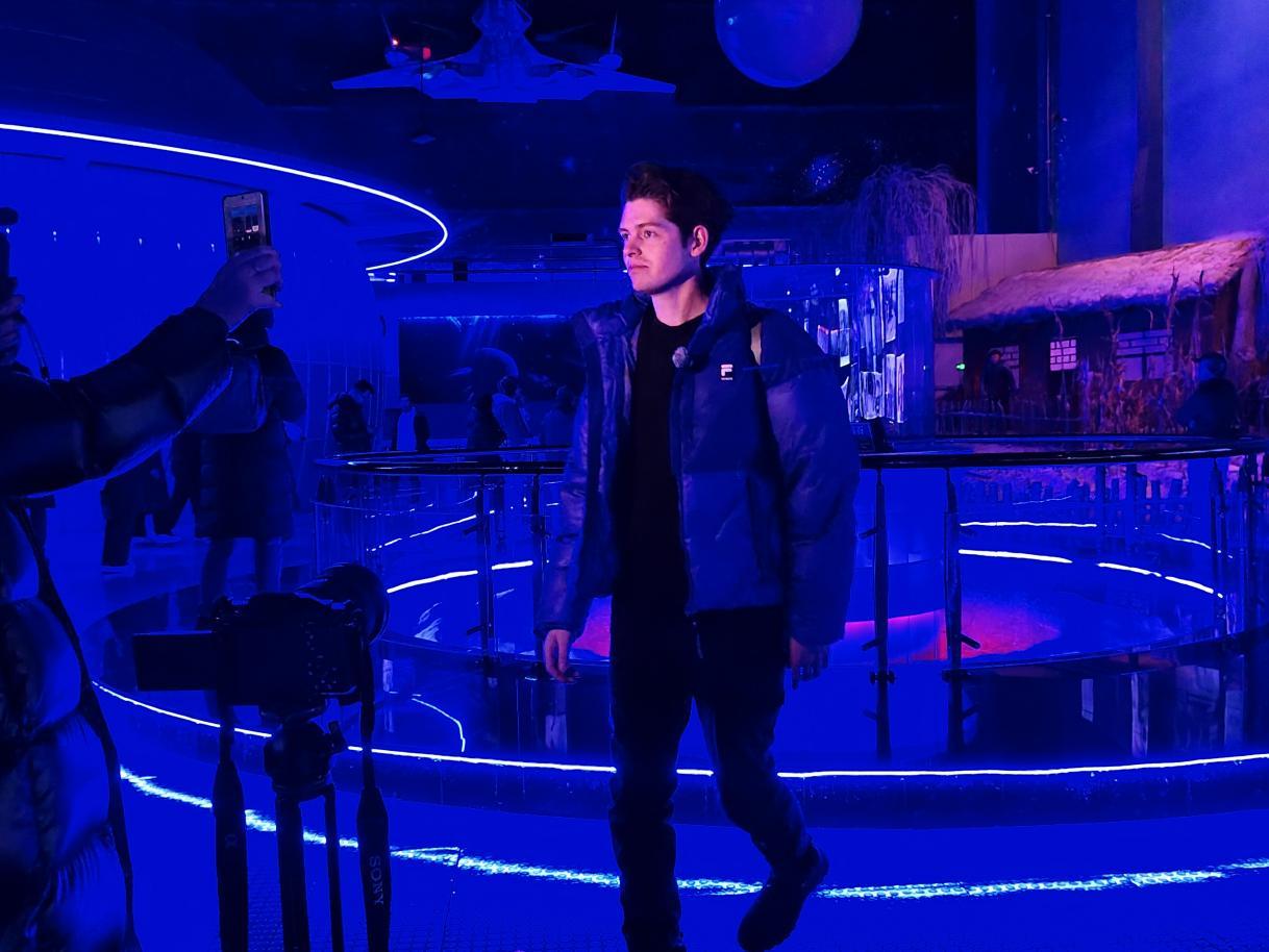 步入展廳,深邃的藍色燈光將眾人帶入宇宙空間般的氛圍。在陳列著數十塊大小不一隕石碎片的展柜前,多名外媒記者調整著角度,用鏡頭捕捉這些“天外來客”在特制展柜中呈現的獨特質感與形態。
