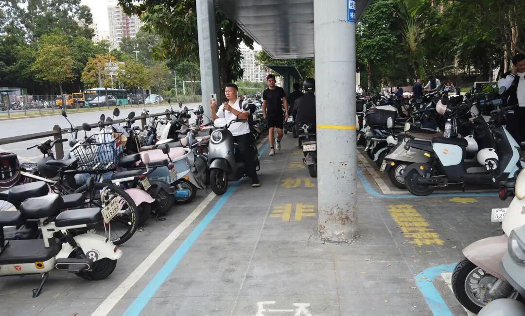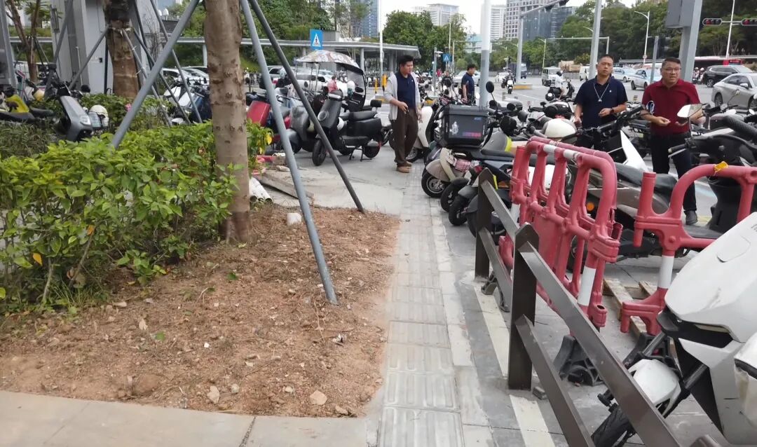石芽嶺地鐵站是南灣街道居民通勤出行的重要樞紐,服務范圍覆蓋周邊多個住宅區、學校和工業園區,人流密集。此前,電動自行車擠占人行道,車輛橫七豎八、首尾相接,不僅導致行人通行受阻、被迫繞行,還時常引發人車混行的安全隱患,成為周邊居民反映強烈的“老大難”問題。11月18日,龍崗融媒“龍崗民聲”欄目曾刊發《石芽嶺地鐵口上演“人車大戰”:人行道縮水成“一線天”,行人步步難!》一文,報道該站點環境秩序亂象。