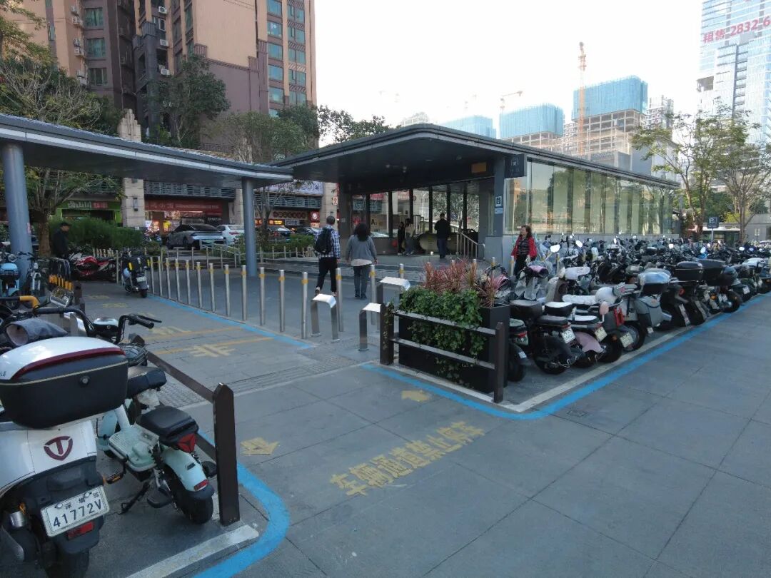 改造后的石芽嶺地鐵站既滿足了行人通行需求,也為電動自行車設置了“專屬停車區”,極大緩解了地鐵站周邊“車亂停、人難行”的問題,顯著提升了居民的出行安全感和幸福感。