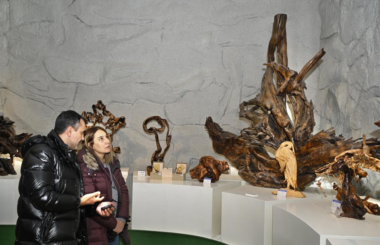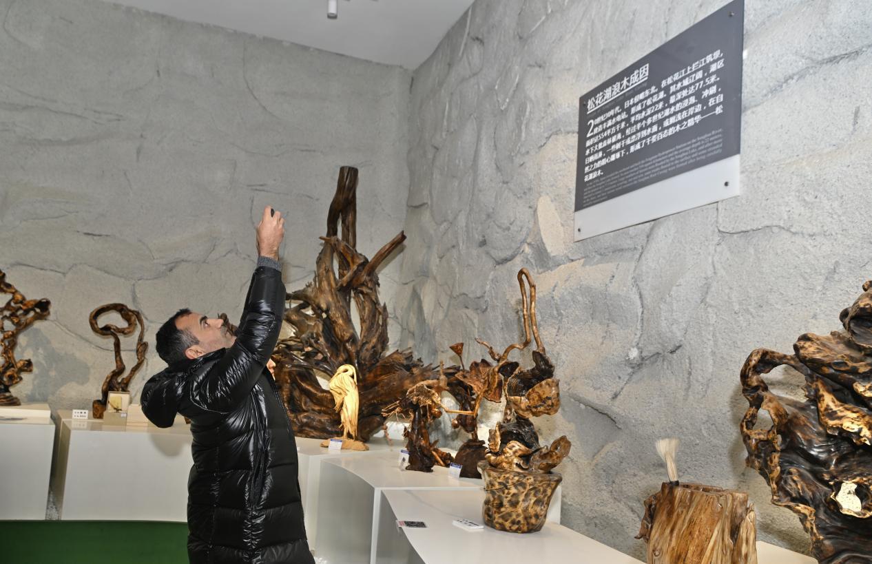 國際媒體采風團成員在松花湖浪木藝術館采訪