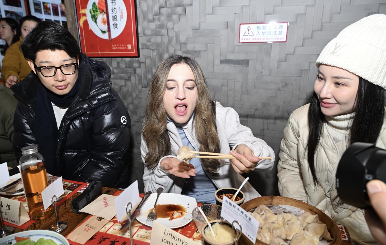 外國媒體記者在吉林市新興園餃子館體驗包餃子