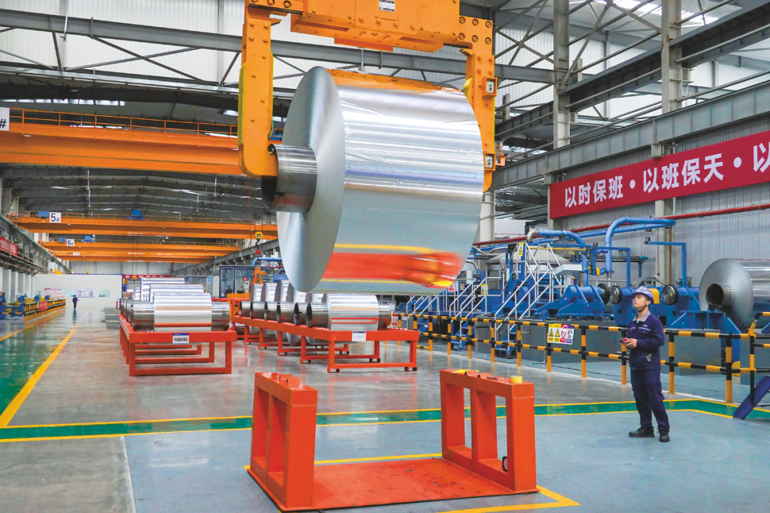 在南寧產投鋁基新材料集團有限責任公司年產20萬噸新能源電池鋁箔技改項目(二期)生產車間,一派繁忙生產景象。記者 葉子榕 攝