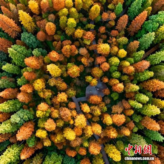 此外,在廣東天井山國家森林公園,30畝落羽杉紅、黃、綠交織,宛如打翻了的顏料盤,11月起便進入顯色期,12月色彩最為濃郁;近期,廣州白云山腳下的云溪植物園也迎來落羽杉“高光季”,吸引了眾多親子家庭前往“打卡”。