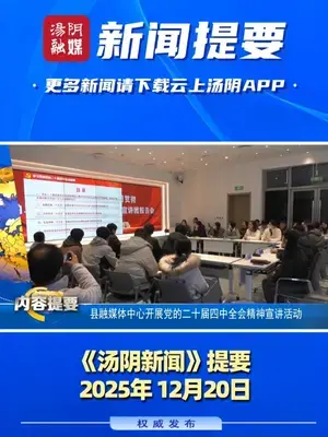 2025年12月20日《湯陰新聞》提要 #湯陰新聞 (編輯:淦杰 責編:焦增輝 校審:郭天凱)
