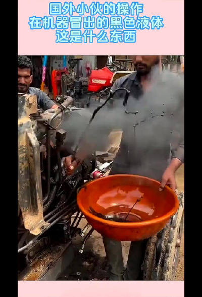國外小伙的操作,在機器冒出的黑色液體,這是什么東西!