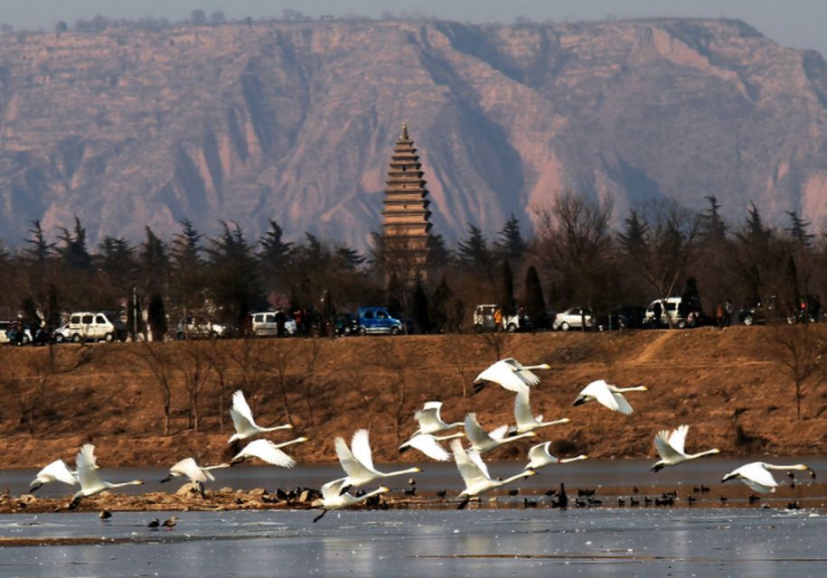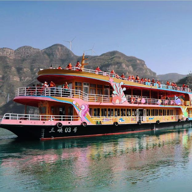 在黃河上乘坐豪華游輪,觀賞三門峽黃河大橋、兩岸山巒溝壑。每年10月到次年3月,可近距離觀賞飛翔的天鵝和海鷗,夕陽時分景色尤為壯美。