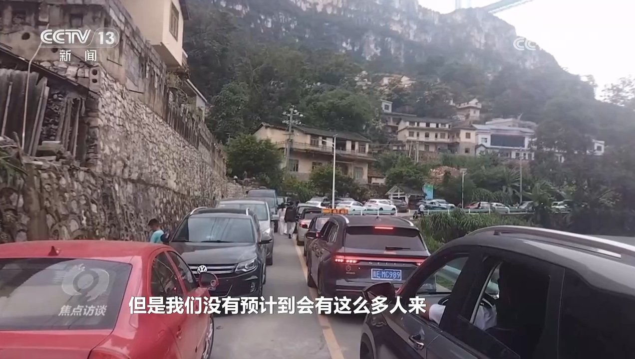 “十一”期間,每天有超過一萬輛車陸續進入科力寨,進出科力寨的路口一度排起了長隊,車輛一直擁堵到花江鎮上。