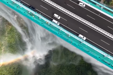 工程團隊順勢而為,在橋頭新建了一座容量達4000立方米的蓄水池,如今,這股水源不但可以保障大橋服務區日常用水與周邊農田灌溉,富余的水則成為了世界最高水幕燈光秀的核心“原料”。