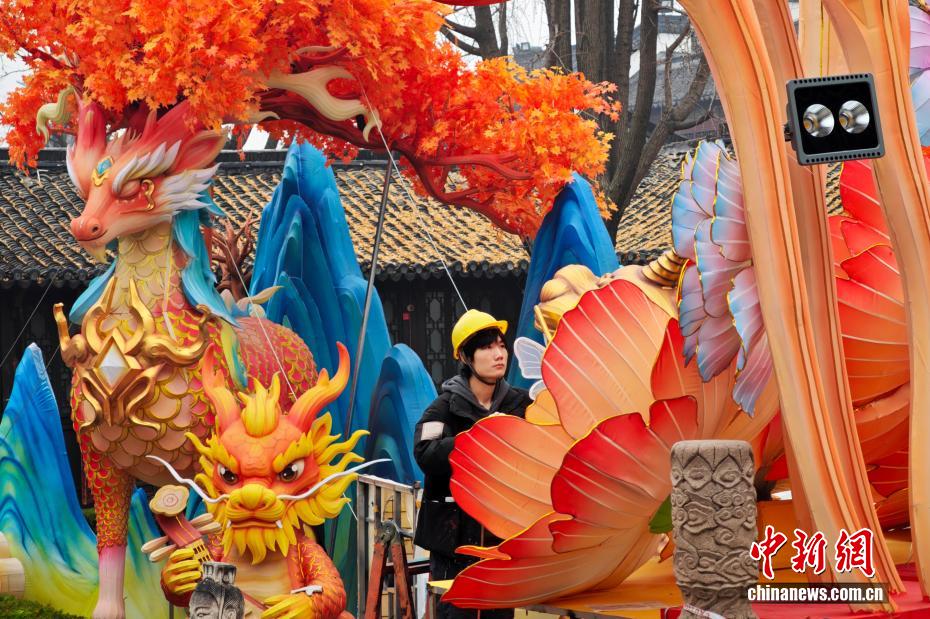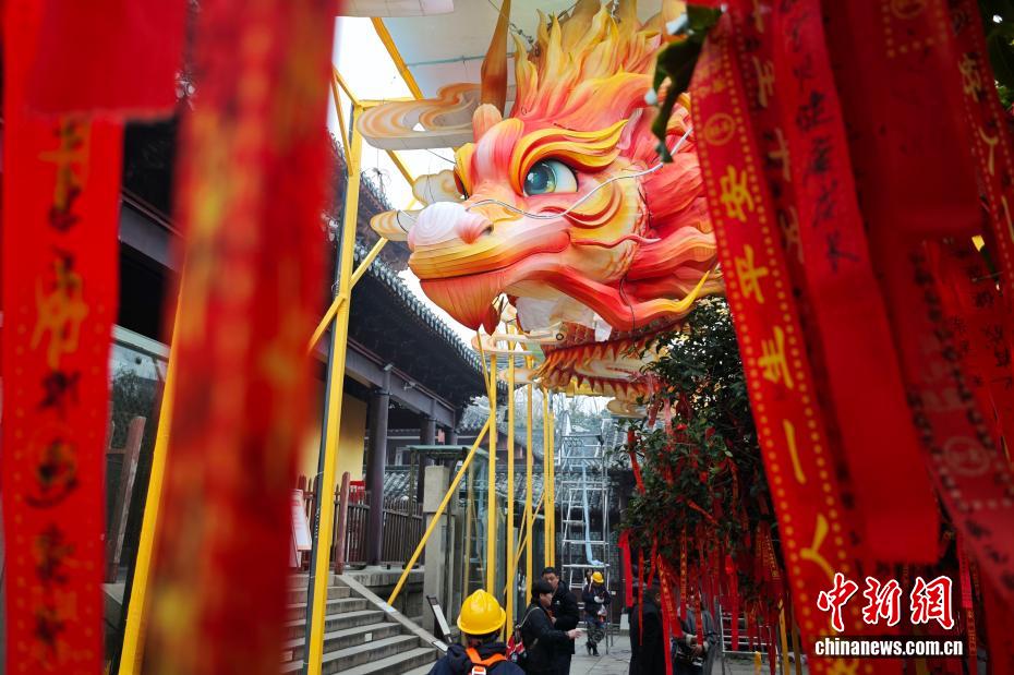 12月20日,江蘇南京,龍燈高高掛起。近期,南京城南夫子廟、白鷺洲公園開始布置大型彩燈,迎接新年的到來。