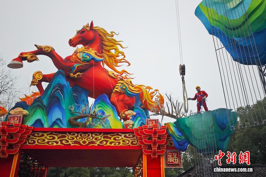 12月20日,江蘇南京,工作人員安裝大型彩燈。近期,南京城南夫子廟、白鷺洲公園開始布置大型彩燈,迎接新年的到來。