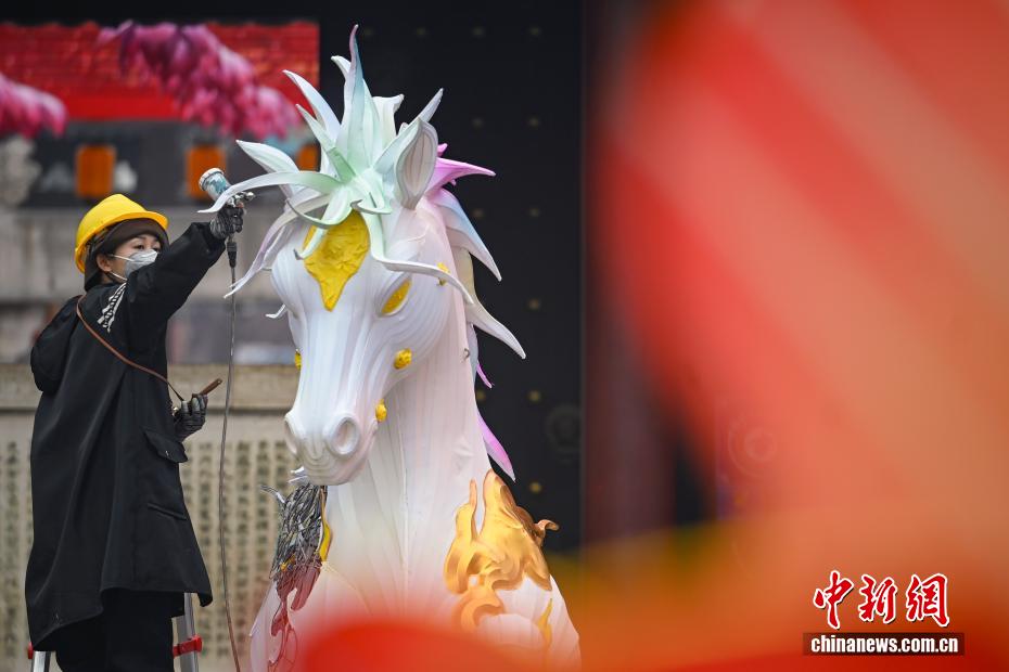 12月20日,江蘇南京,工作人員給大型彩燈上色。近期,南京城南夫子廟、白鷺洲公園開始布置大型彩燈,迎接新年的到來。