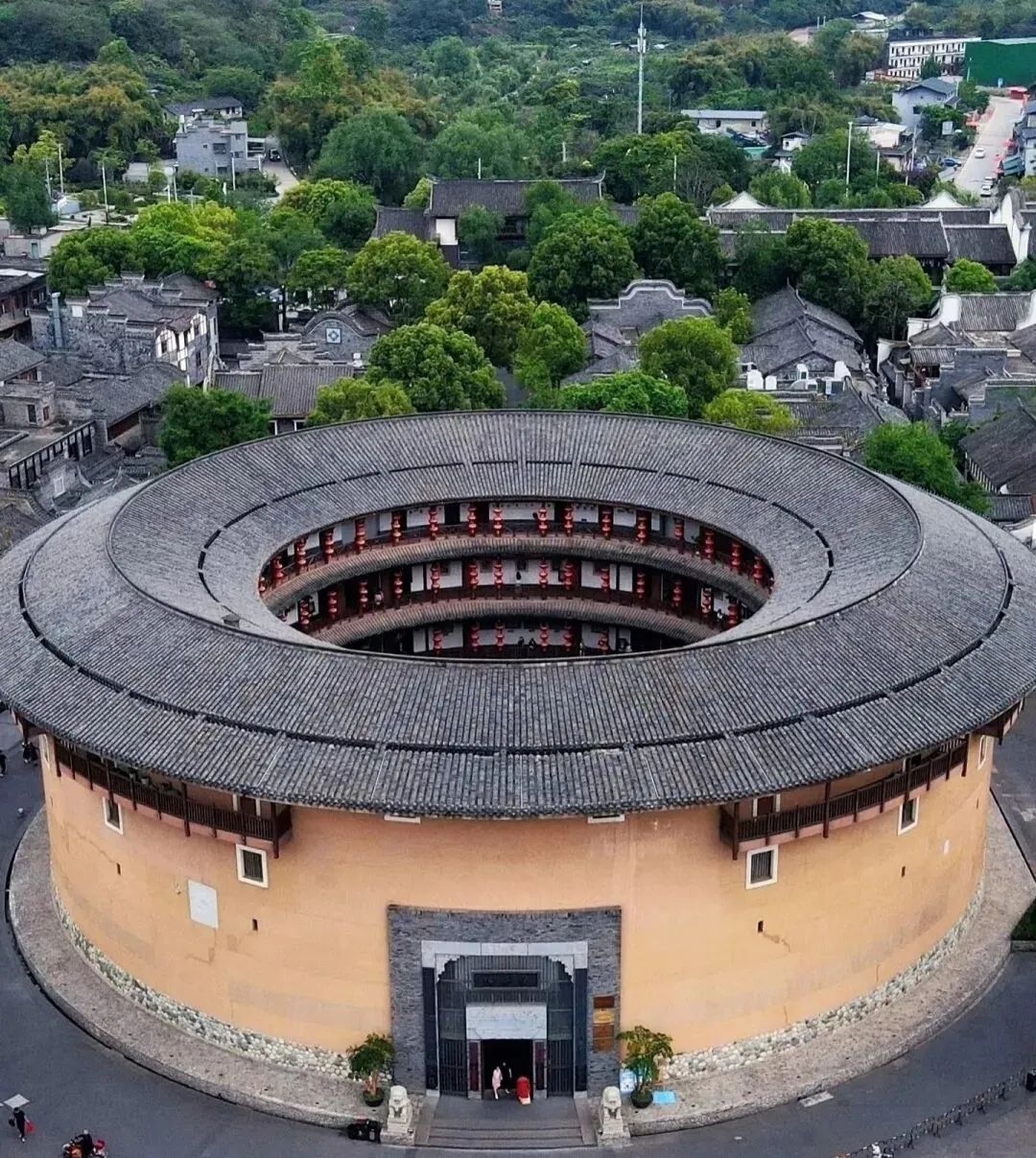 其次是建筑。 為聚族而居、防御自保,客家人創造了圍龍屋、土樓等曠世奇居。其中,圍龍屋以《周易》陰陽八卦為布局理念,融合北方四合院與南方土著建筑技藝,門前必有半圓形水塘,背靠丘陵,形成天圓地方、山水相依的和諧格局,堪稱一部立體的中原哲學教科書。