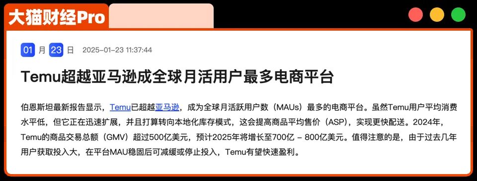 今年1月份,Temu超越亞馬遜,成為全球月活用戶最多的電商平臺。