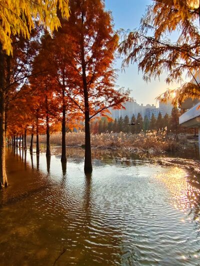 ?水杉、蘆葦、棧道、游人、倒影,交相輝映,構(gòu)成了一帽優(yōu)美的畫卷。