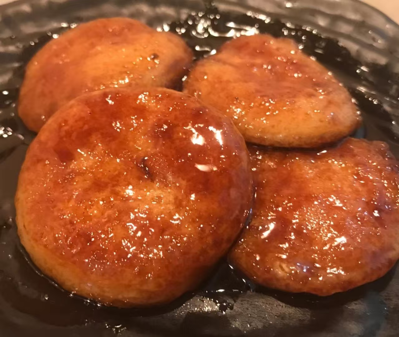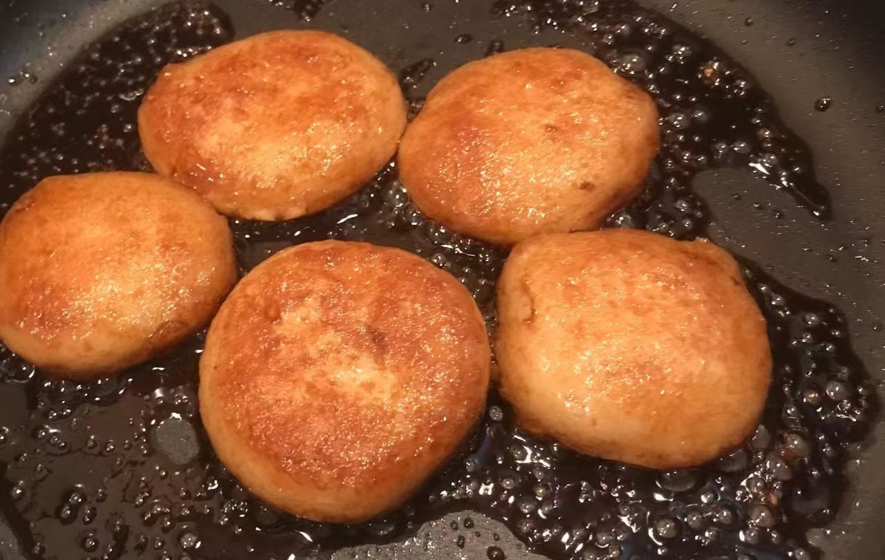 4、鍋里放一點清水,一些黑糖加熱煮到濃稠,糍粑再次夾進去,裹上琥珀色的料汁即可盛出。