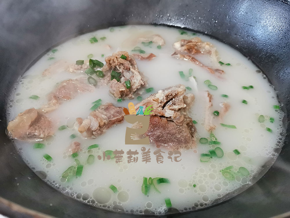 3、先大火煮開,即可轉為小火咕嘟,兩個小時左右,其充分燉透,撒些鹽,香蔥,就做好了。