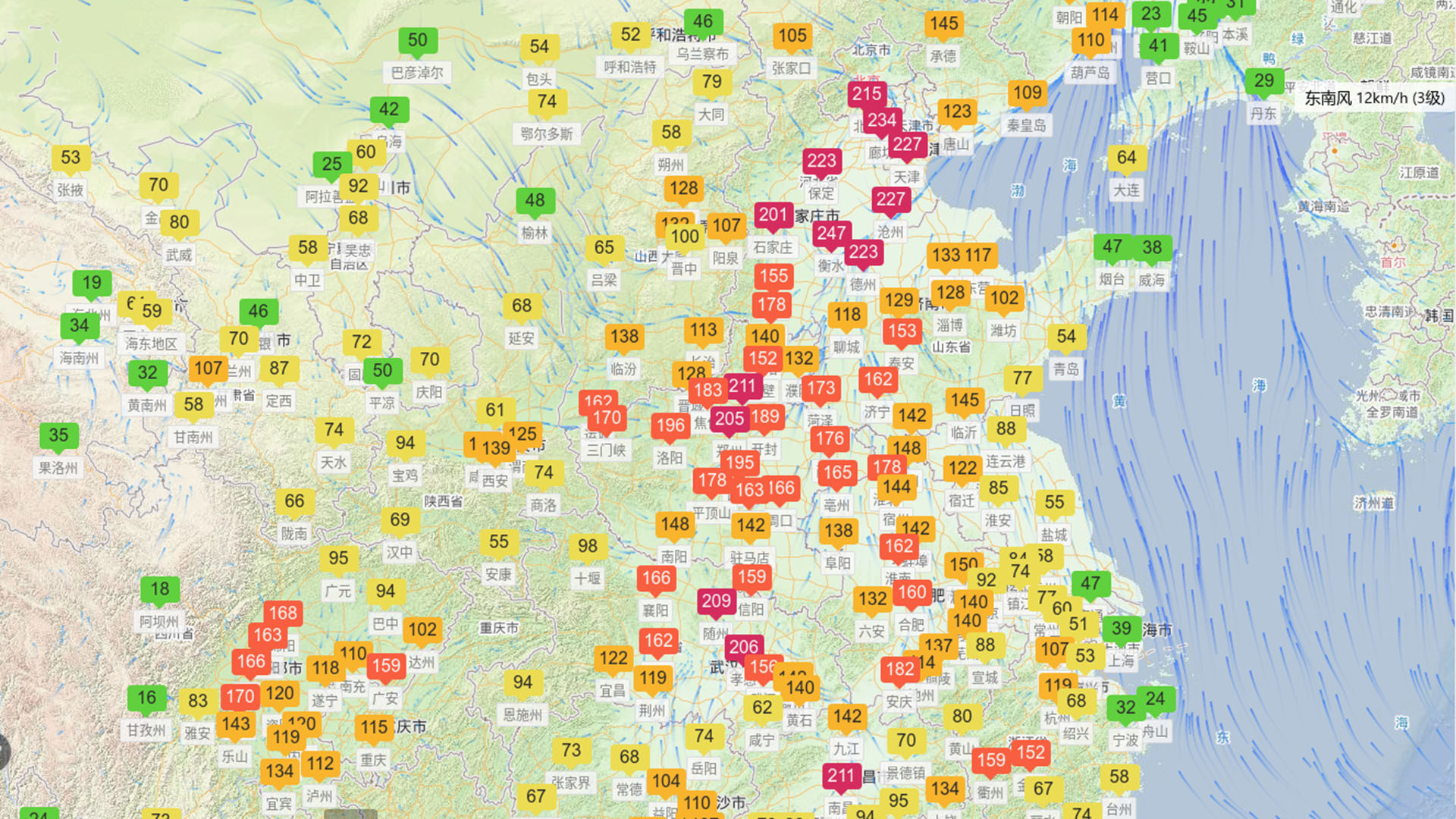 但在冷空氣到來之前,彌漫在中東部大部分地區的霧霾天氣,會依然持續。尤其是燕山和太行山一帶的京津冀,空氣污染尤其嚴重。在河南、湖北、江西局部地區,空氣污染也達重度。預計北方本輪空氣污染要等到明天晚上冷空氣開始南下時才會消散。