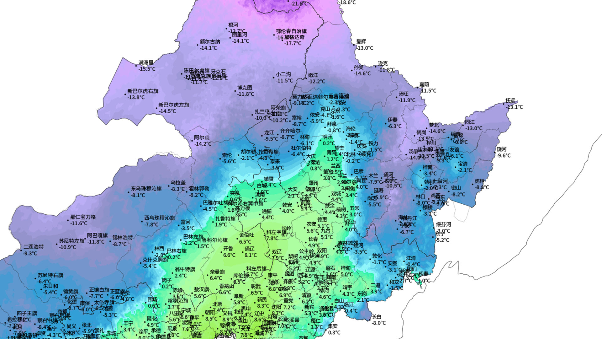 截至目前0度冰凍線已經來到大慶-哈爾濱一線,幾乎整個東北平原氣溫都來到零上,