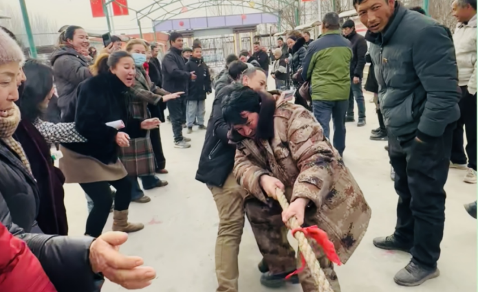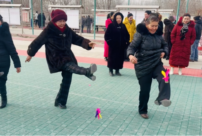 活動現場精心設置了拔河、踢毽子、冬季長跑、斗雞等豐富多彩的趣味項目,吸引了廣大群眾的積極參與,現場氣氛熱烈非凡。在踢毽子比賽中,各族婦女們身姿靈活、動作嫻熟,展現出良好的身體素質與運動樂趣;拔河賽場上,參賽隊員們齊心協力、奮勇拼搏,圍觀群眾的吶喊助威聲此起彼伏,將現場氛圍推向高潮;冬季長跑項目則讓大家在運動中感受冬日活力,充分展現出積極向上的精神風貌。