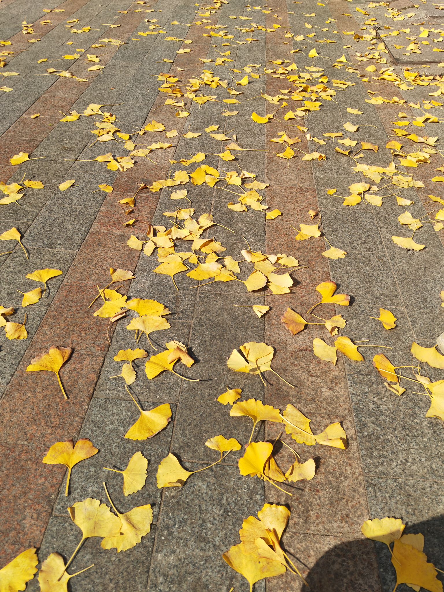 撿拾著顏色和形狀更好看一些的銀杏葉,要把它們帶回家。帶回去干嘛呢,沒想太多。
