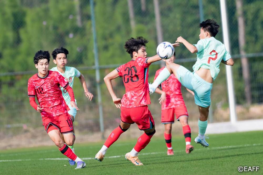 下半時,第43分鐘(U15比賽半場時長35分鐘),韓國隊利用角球扳平比分,剛剛替補登場的崔俊赫頭球攻門得手。第66分鐘,韓國隊利用角球再造殺機,中路球員頭球攻門擊中立柱彈出,皮球被替補登場的中國隊門將陳城云沒收。此后兩隊均未能改寫比分。