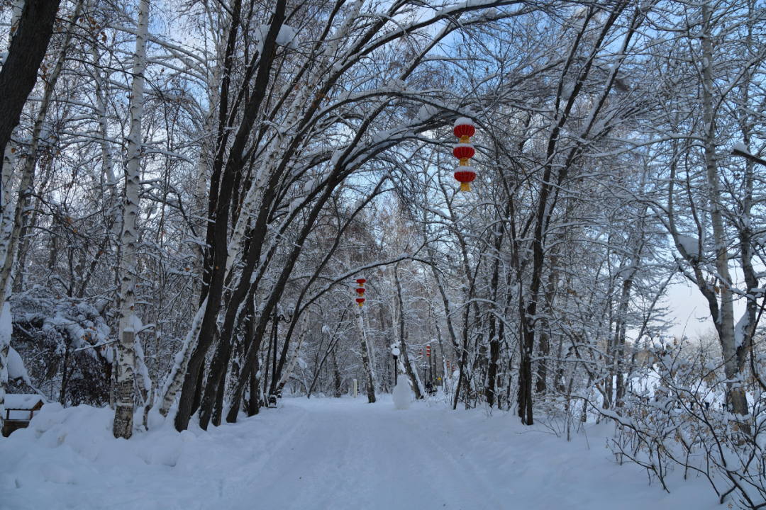 再見時,已是來年二月底。一進里面就被滿眼的白晃了神,厚厚的雪把每一根枝椏都裹成了毛茸茸的模樣,連空氣里都飄著雪的清甜。門口的鴿子還是老樣子,縮著脖子在雪地里啄食,有人走近也不慌,反倒歪著頭看你,像在打量熟客。