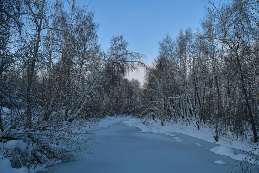 裹上皚皚白雪的克蘭河又是另外一番風景,盡管大部分河面被冰雪凍住,但始終有一股河水叮咚作響,一路奔騰匯入額爾齊斯河,將阿勒泰的故事帶向遠方。