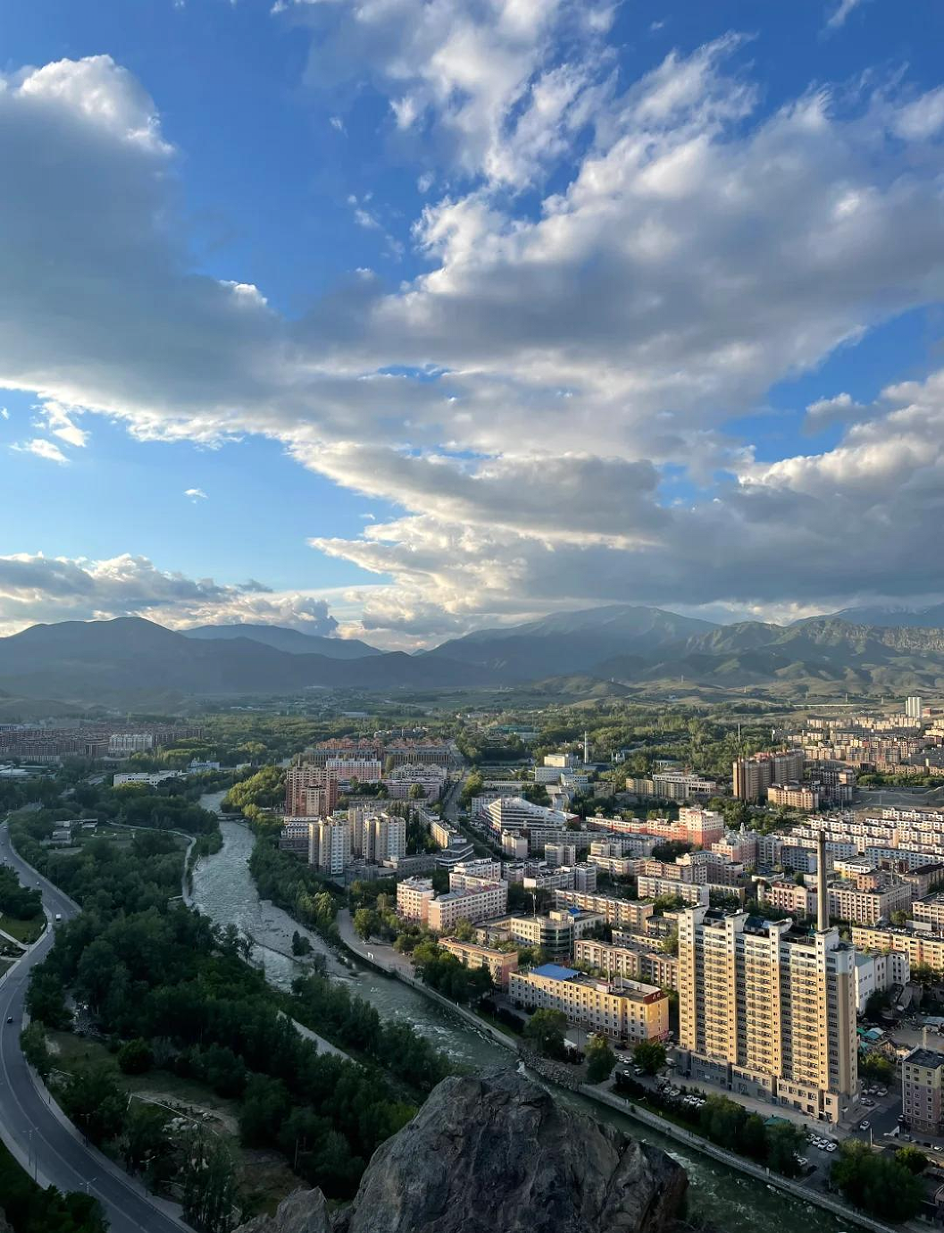 山風便帶著草原的清冽漫過來,吹散白日里的燥熱,腳下的城市漸次亮起燈火,沿著克蘭河的走向蜿蜒成流動的光帶。