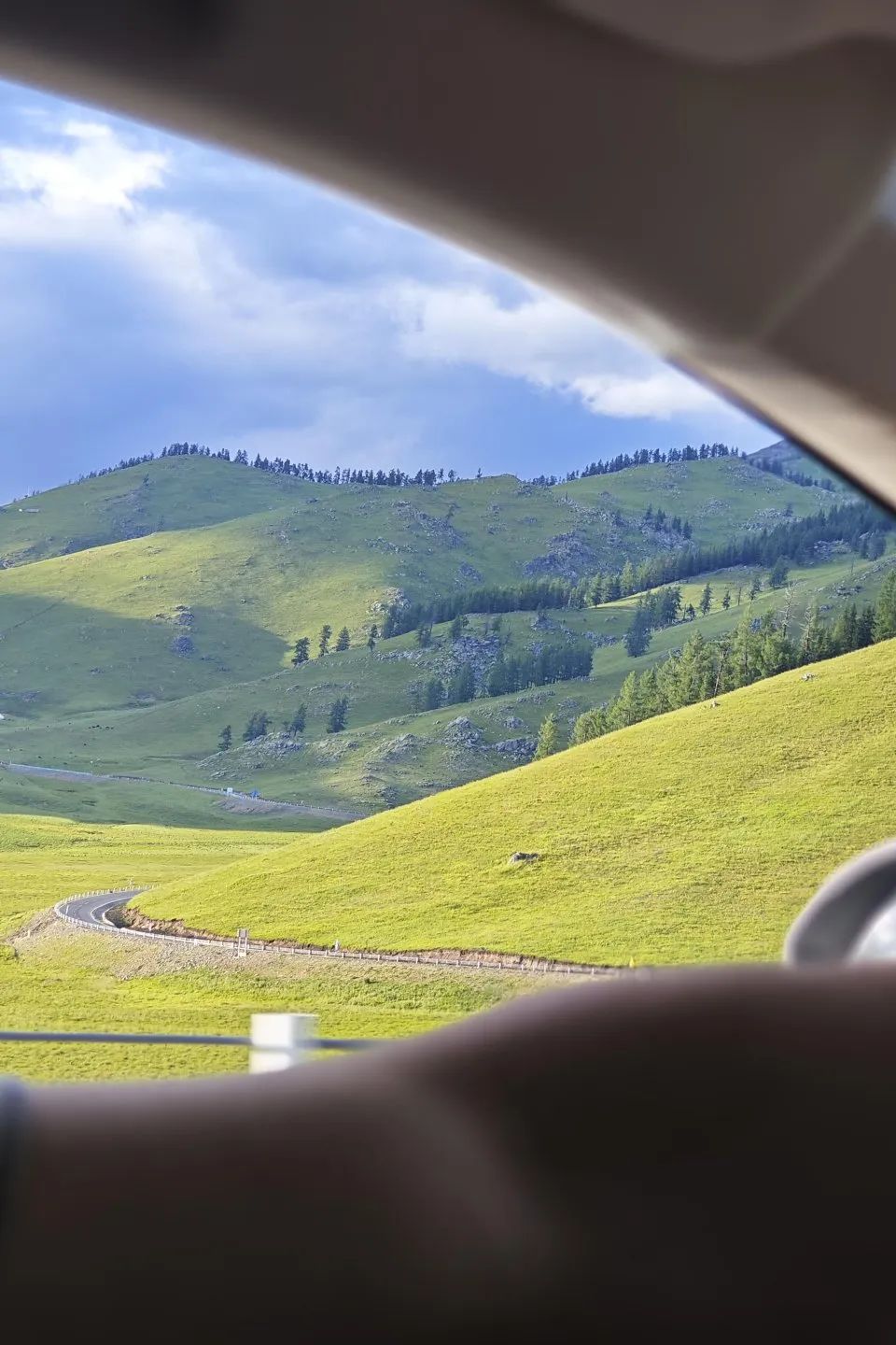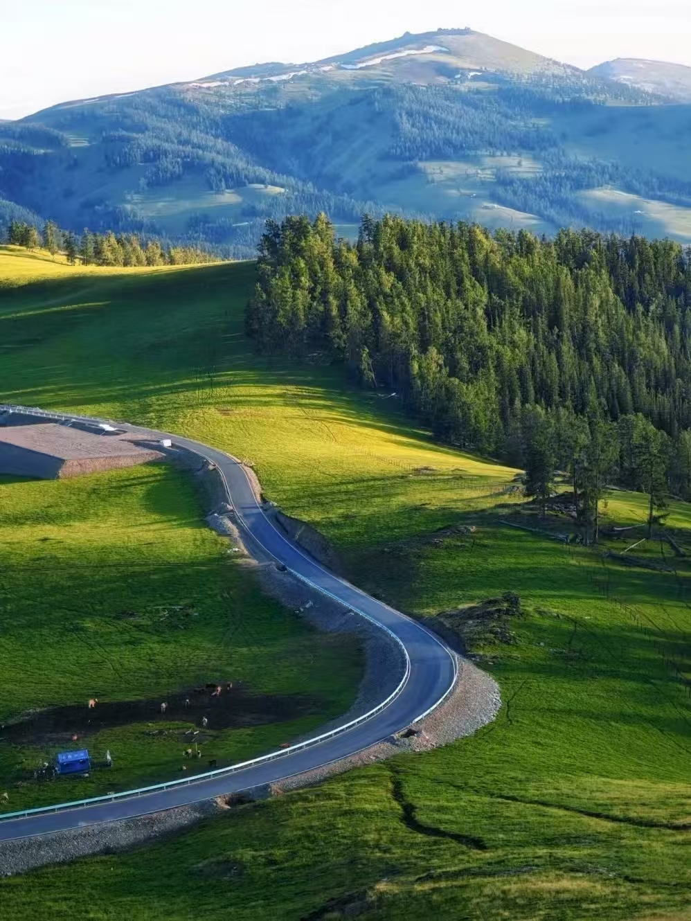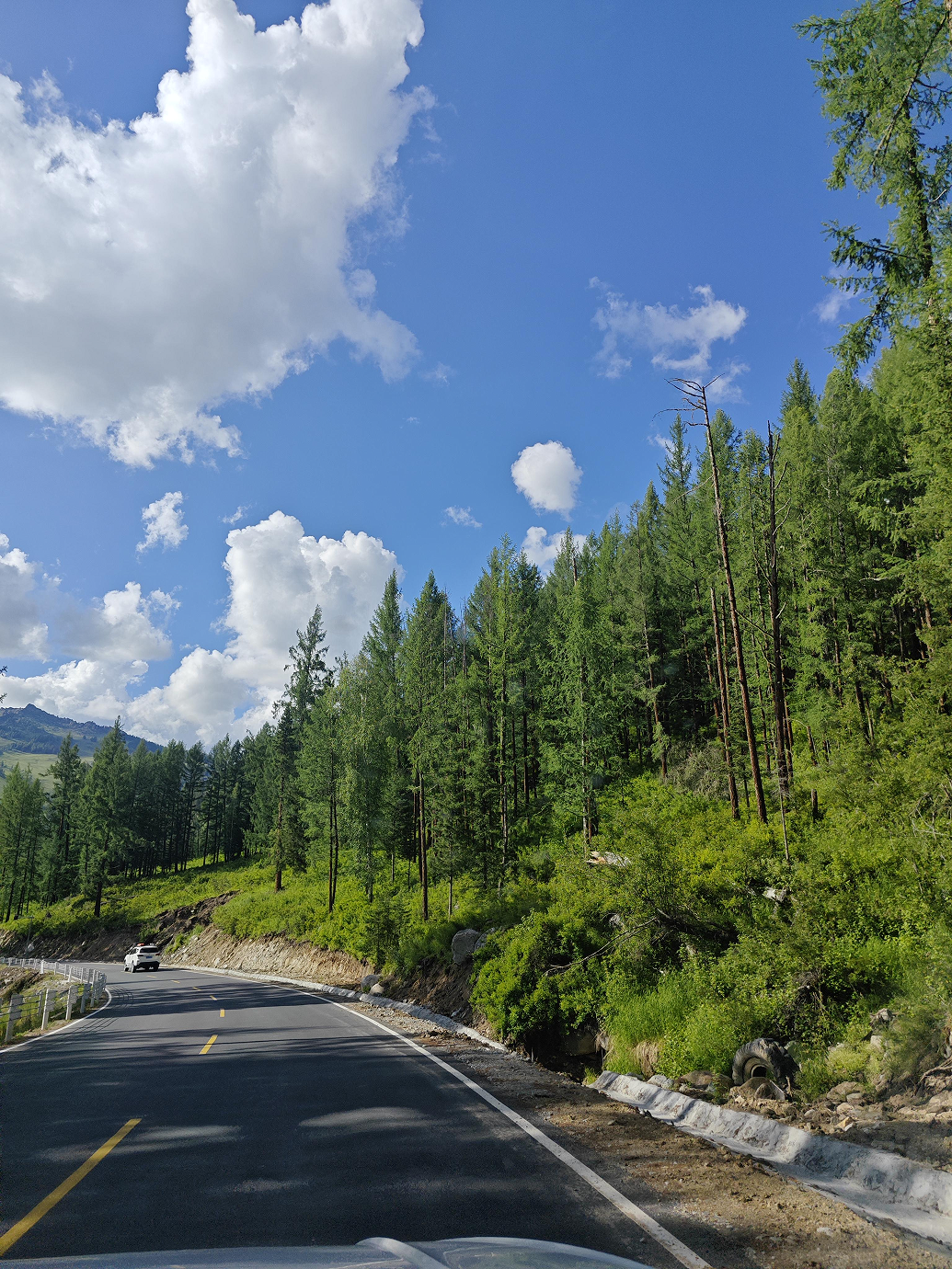 人在這樣的路上走,像被扔進了一幅流動的巨畫里,風裹著草香和松濤灌進來,帶著山野的野氣,撞得心胸嗡嗡作響。