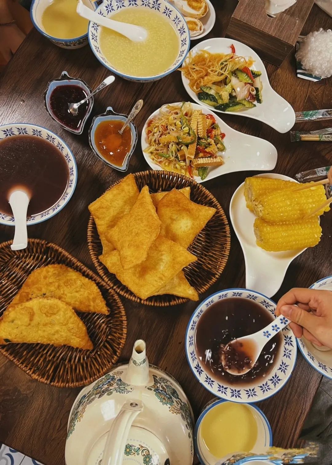 開胃小菜率先激活味蕾,油香酥脆的包爾薩克肚子里或是裝滿小菜,或是抹滿果醬,咬上一口,存齒留香,一口混著奶皮子、塔爾米、酥油的咸奶茶順著食道滑進肚中,這頓早飯,吃的攢勁兒。