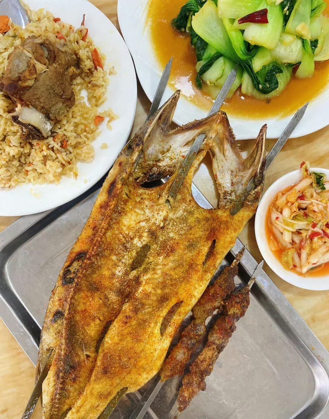 炭火的煙火氣鉆進肌理,咬一口,外皮的酥、魚肉的嫩、調料的香,還有一絲若有若無的河鮮清甜,層次豐富。