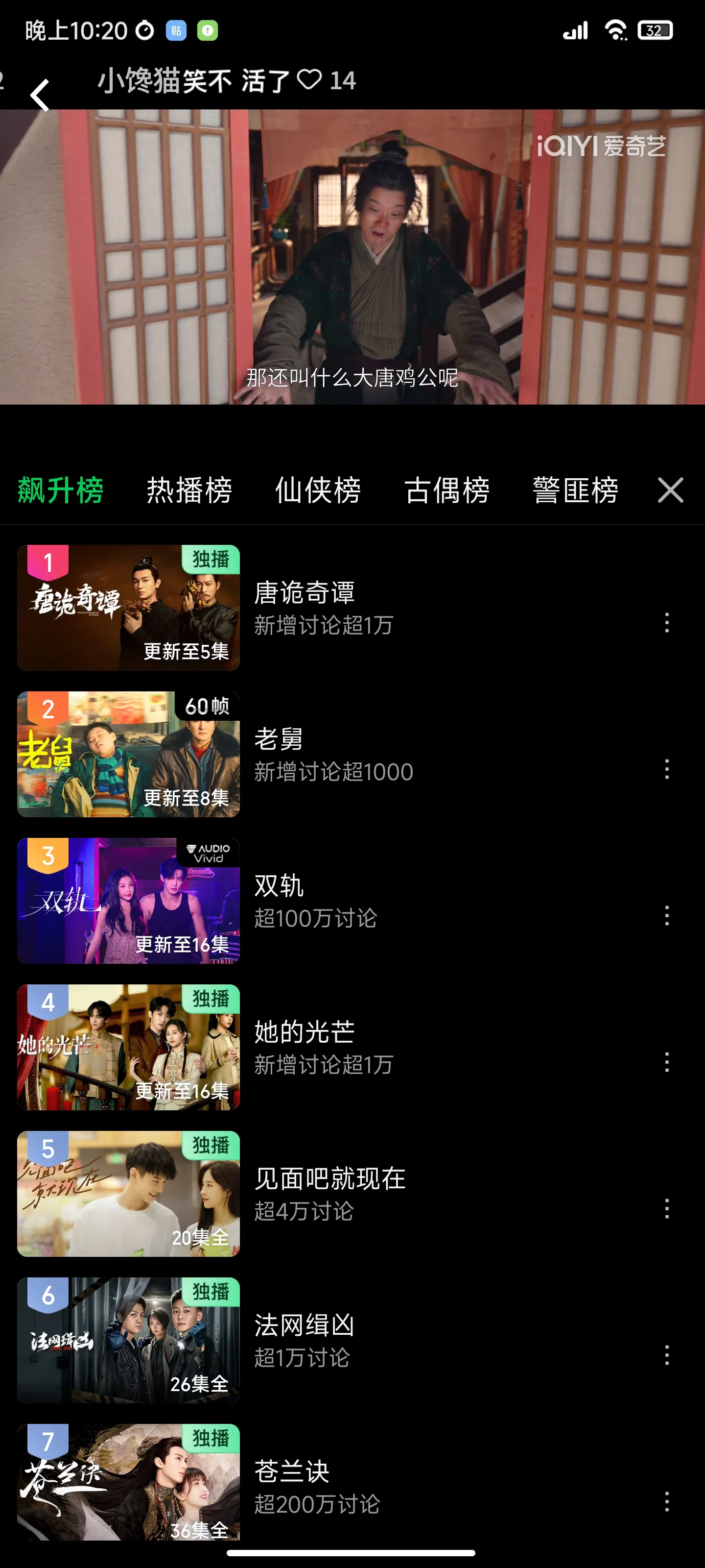 首播5集,感覺很快就看完了,完全不夠看。雖說變成了微短劇形式,但劇粉追劇熱情不減啊,上線3小時(shí),站內(nèi)熱度就從1000多飆升到了6000多,迅速登上飆升榜第1,果然是有強(qiáng)大劇粉盤的劇。