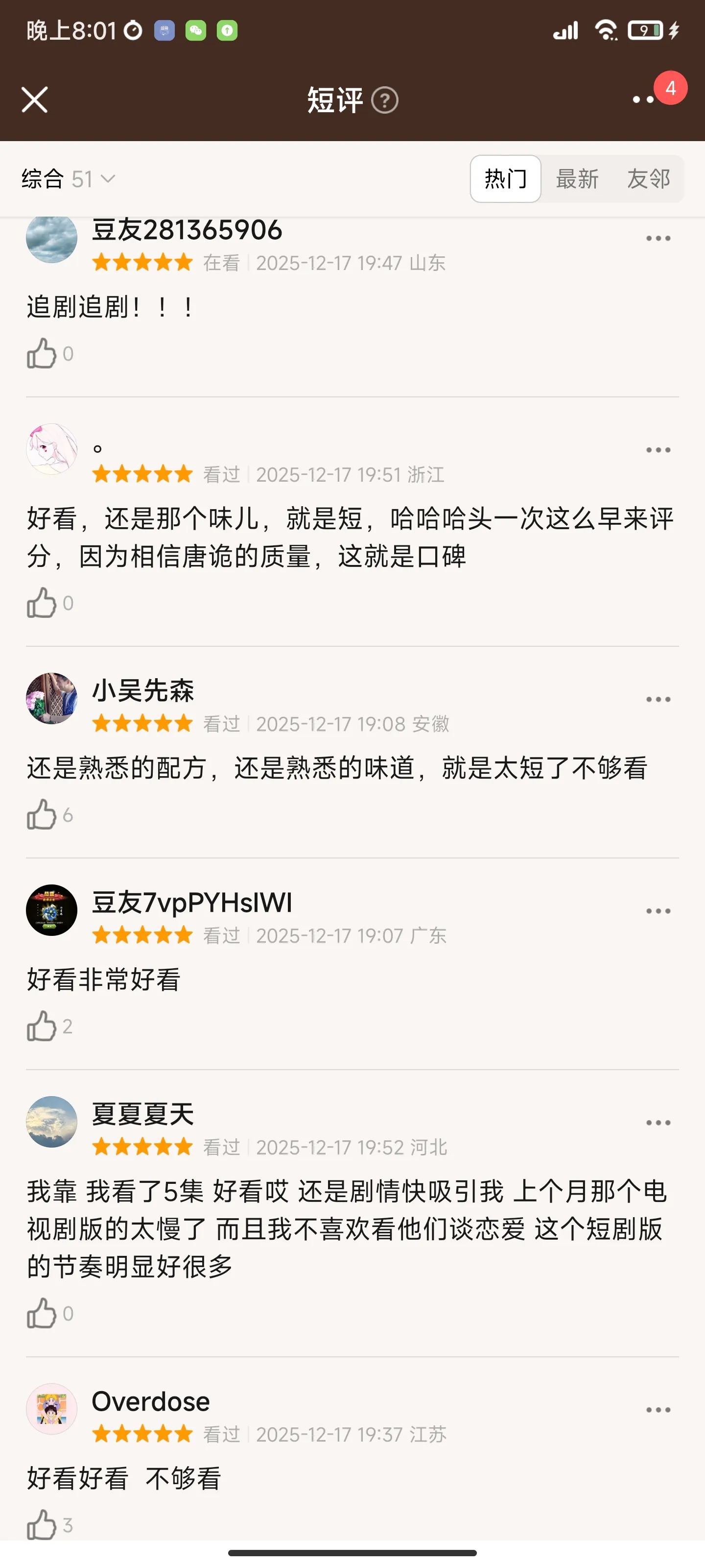 首播口碑也出來了,大部分觀眾都給出了好評(píng),評(píng)價(jià)出奇一致,就是好看但太短,看不過癮啊!雖然是短劇,但并沒因?yàn)槎叹徒档推焚|(zhì),熟悉的配方,熟悉的味道,是必追系列。