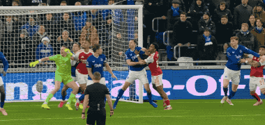 比賽踢了18分鐘,兩隊才完成第一次射門,場面相當沉悶。第25分鐘,阿森納獲得角球,禁區內奧布萊恩雙手攔網,來了一個排球動作,VAR介入,裁判判罰點球。