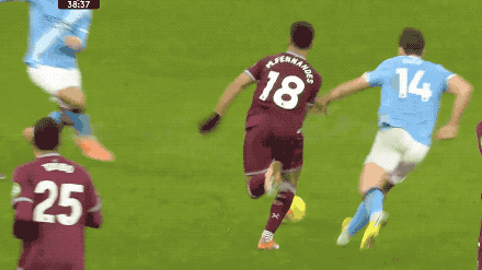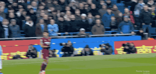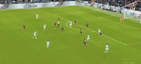 接下來的20分鐘,場面相對平淡,曼城完全控制局面,西漢姆聯幾乎沒有辦法推進到曼城的30米區域。