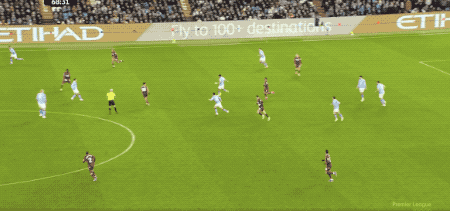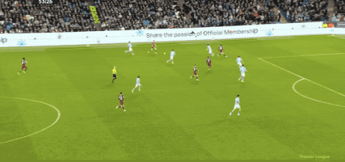 第54分鐘,曼城防線明顯松懈,鮑文的射門擊中邊網(wǎng)。