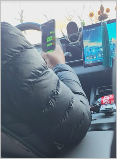 在駕駛行為方面,個別駕駛員存在安全隱患。調查中發現,少數駕駛員在行駛過程中打電話、聊微信。例如,一位曹操出行網約車駕駛員在行駛過程中多次手持手機通話;一位百度打車網約車駕駛員在行駛過程中手持手機操作微信。