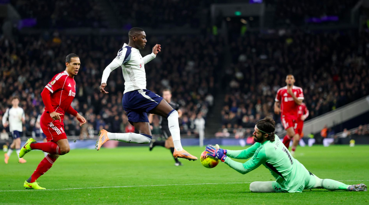 第64分鐘,熱刺差點扳平比分,穆阿尼的傳中越過阿利松的頭頂,擊中橫梁彈了出來。