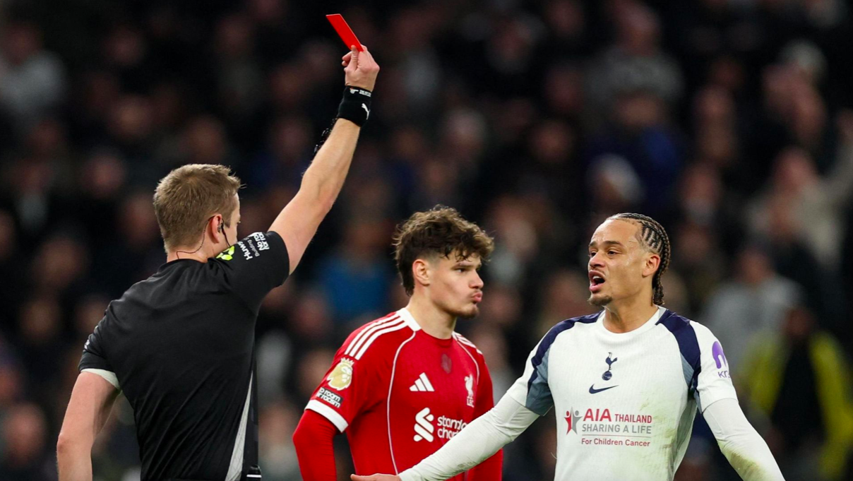 VAR介入,裁判回看過后做出改判,直接向西蒙斯出示紅牌,來到英超的第14場比賽,花費熱刺6000萬歐元的西蒙斯打進1球,送出2次助攻,數據依舊慘淡。