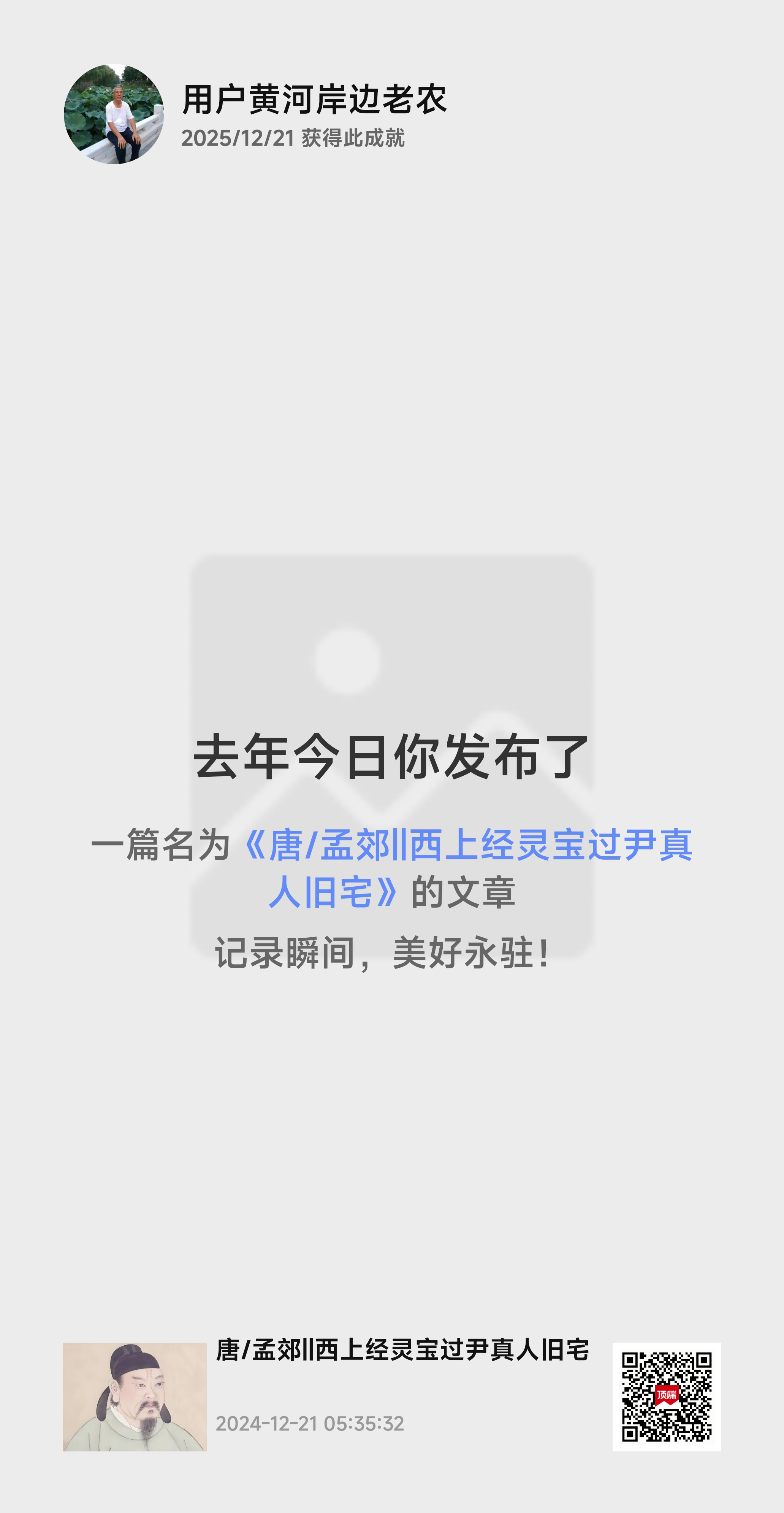 去年今日發表題為《唐/孟郊‖西上經……舊宅》的文章????