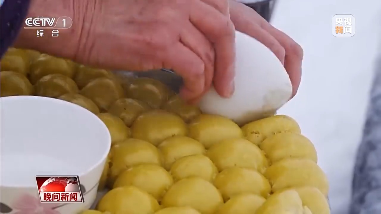 在東北,冬至包粘豆包既是一項傳統,也是人與人之間聯絡感情的方式。在黑龍江省孫吳縣沿江滿族達斡爾族鄉,村民們帶上自家磨的江米面、熬煮的紅豆餡,走進炕火最旺的人家,邊包粘豆包,邊嘮家常。蒸熟后的粘豆包晶瑩飽滿,隨即被端到室外冷凍。在天然低溫下迅速結凍,裝入布袋存入倉房,可供整個冬季食用。