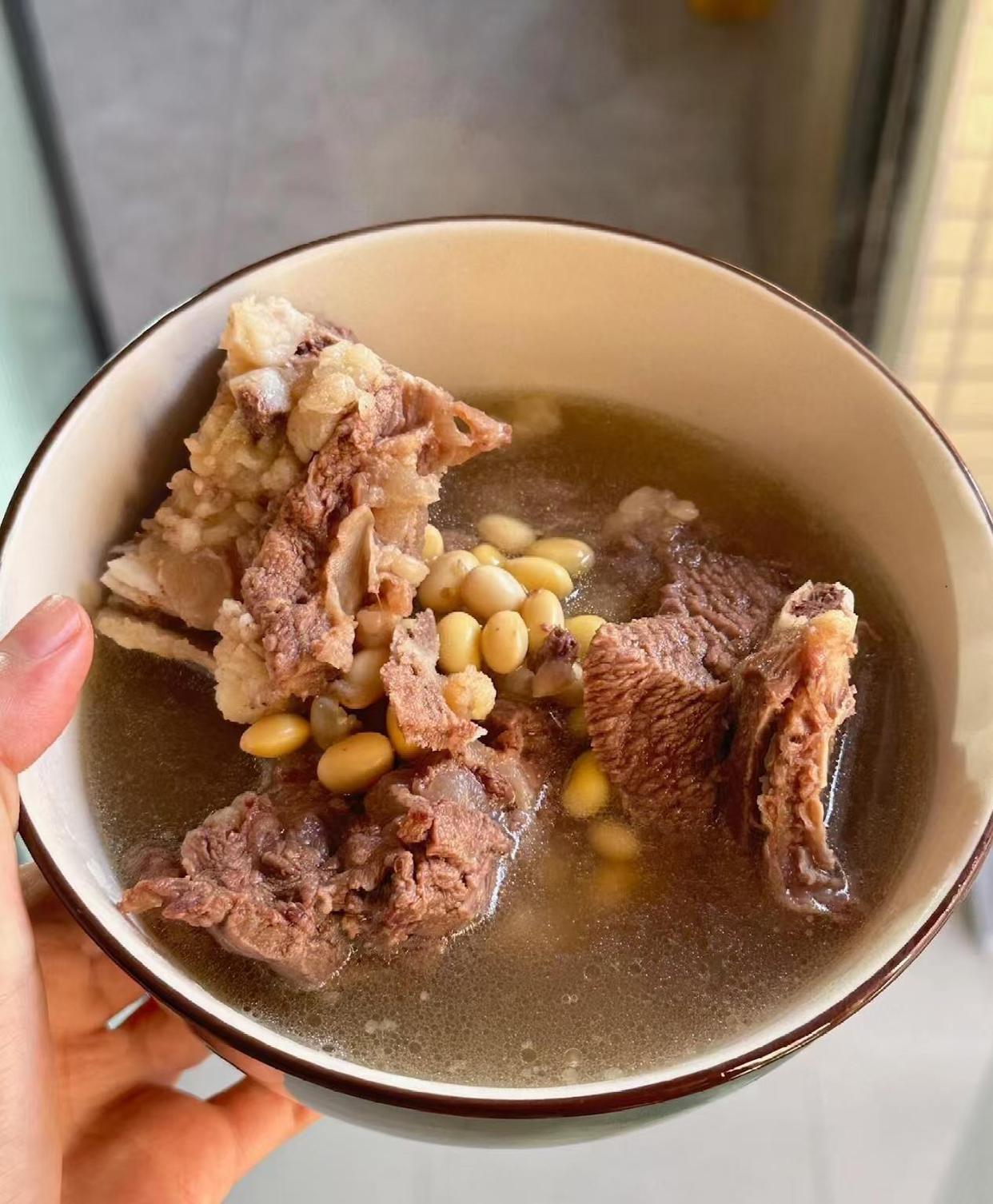 學(xué)生黨最在乎價(jià)格:一根3斤的牛筒骨25塊泡發(fā)的干黃豆1斤6塊胡蘿卜兩根3塊合計(jì)34元高壓鍋能出4升湯夠4個(gè)室友喝兩頓平均每人4.3元。