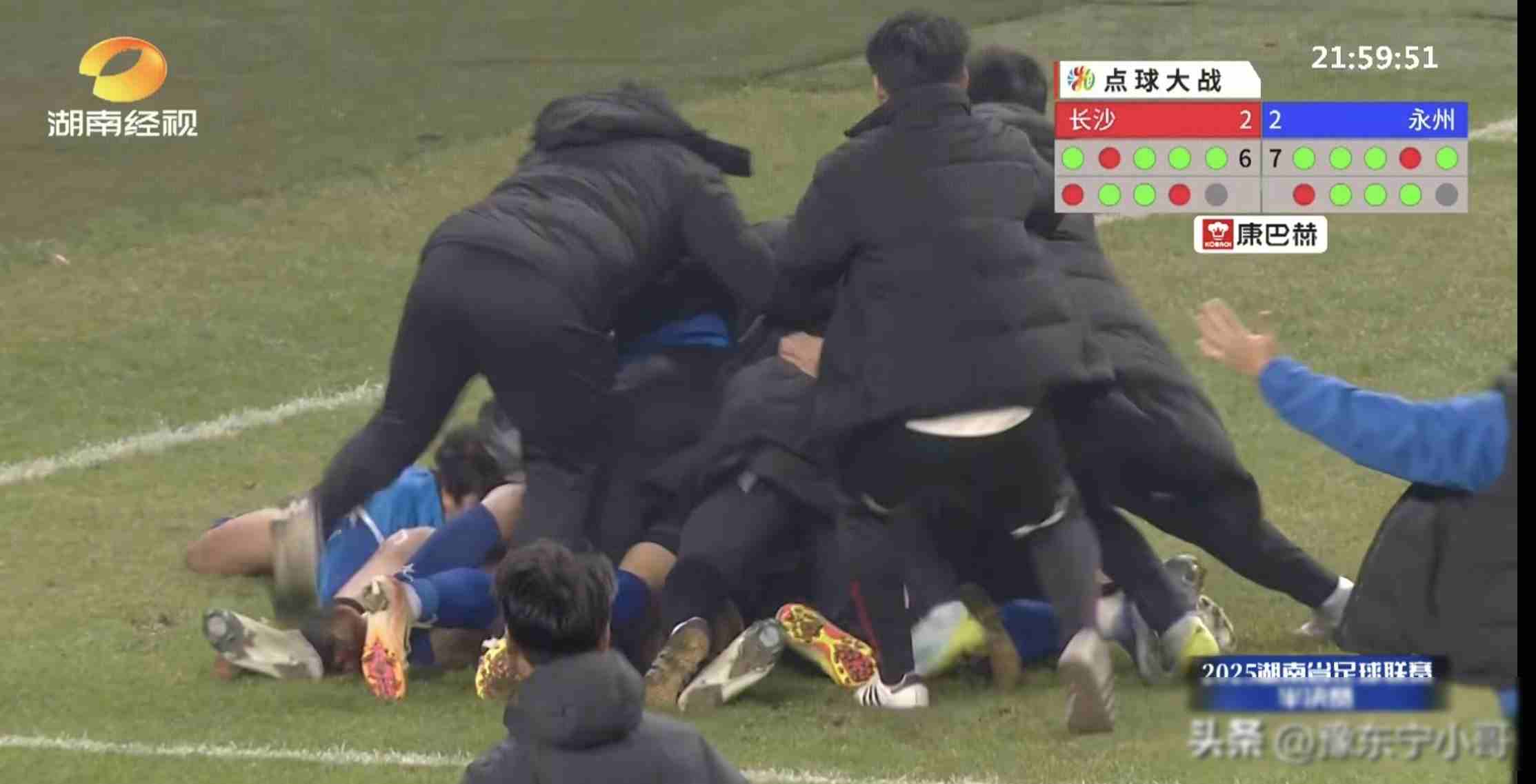 12月20號那天晚上,長沙隊在主場和永州隊比賽,常規時間兩隊踢成2比2,點球大戰里長沙隊7比6輸掉,這不是冷門,是聯賽的格局開始改變,永州隊之前排在第六位,大家都沒有料到他們能打到這個階段。