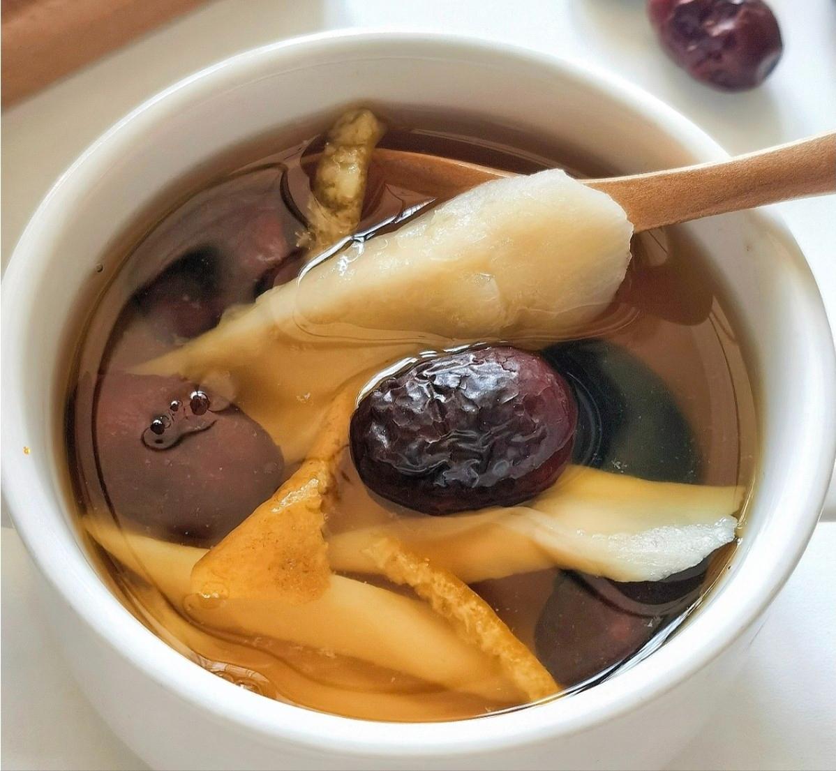 食材:山藥片10克、紅棗3顆、陳皮少許。